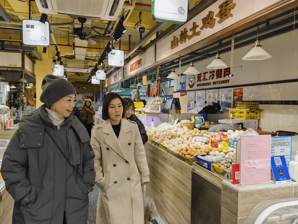 At the Wuzhong Market in downtown Shanghai, neatly arranged produce stalls and fragrant food stalls immersed Singaporean tourist Li Yuanfeng and his family in the city’s “lively atmosphere.” They bought kumquats with cash and were impressed by the market’s cleanliness. “Grocery shopping here must be a joy,” Li said.